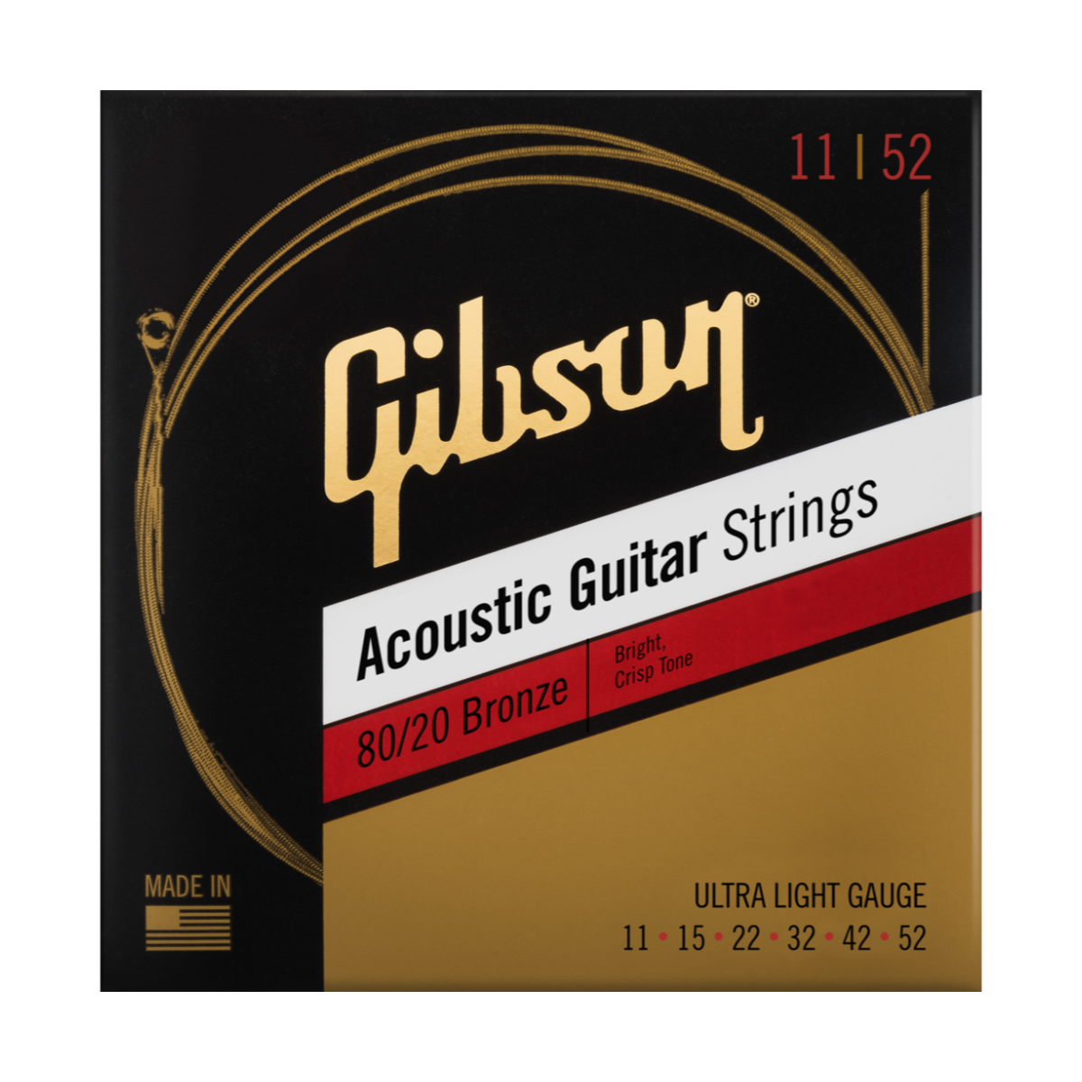 Gibson acoustic guitar strings are wound with an 80% copper and 20% zinc alloy, delivering bright, clear tones while maintaining the perfect balance of authentic acoustic sound and playability.