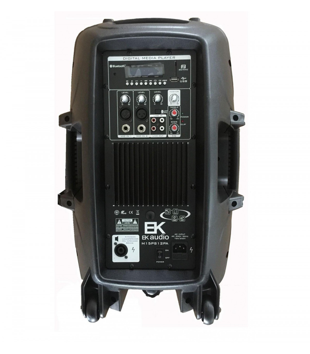 - Volume controls: channel 1, channel 2, Line/MP3; Master volume
