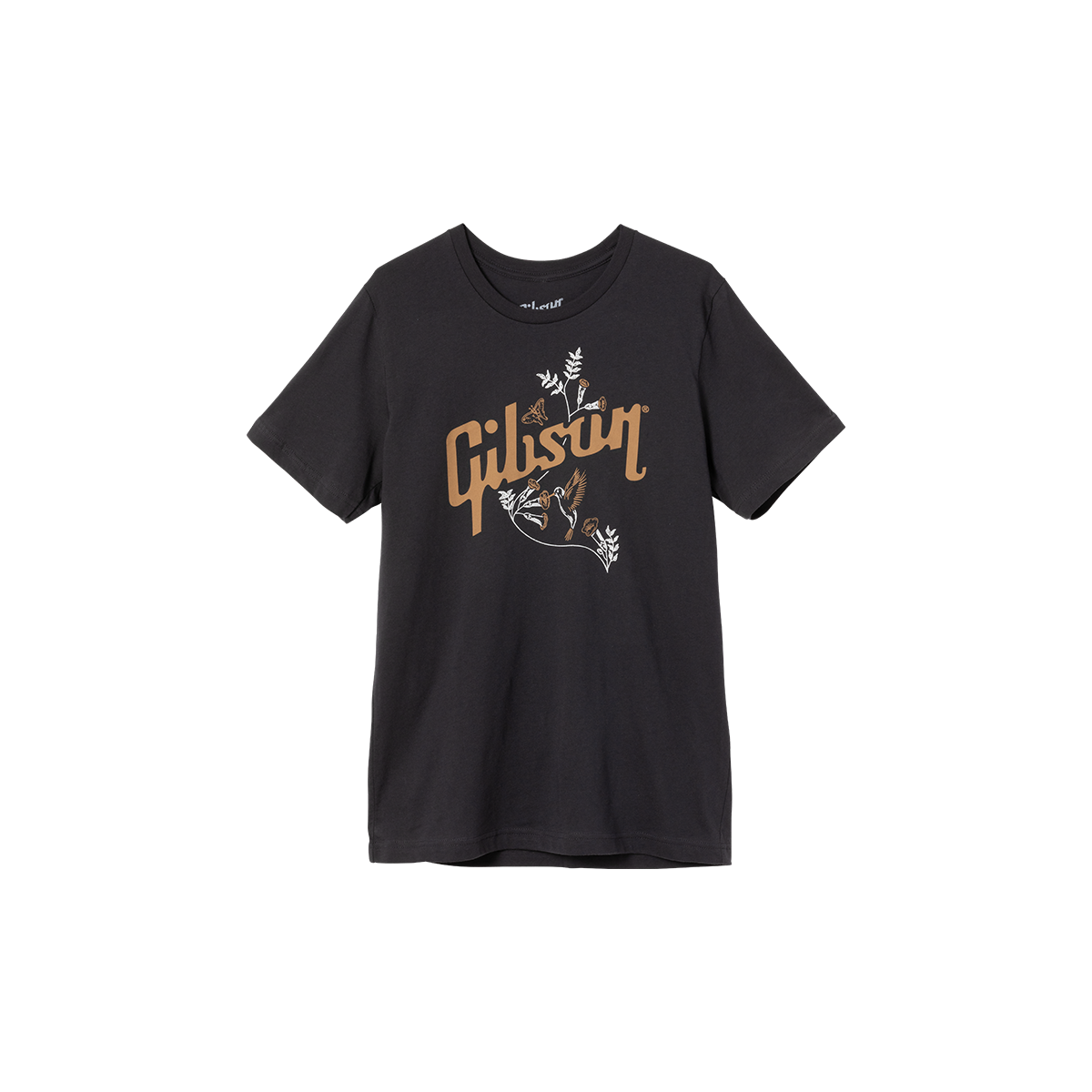 Gray t-shirt featuring the graphic of the iconic Hummingbird acoustic guitar.