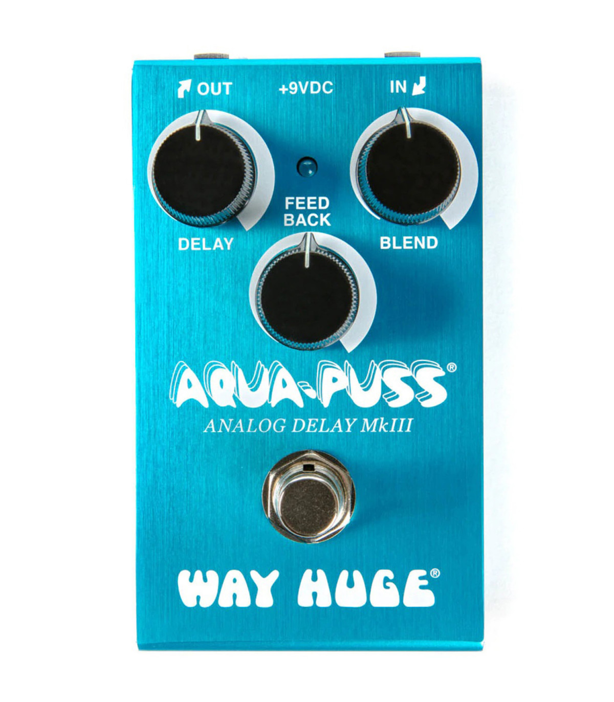The Aqua-Puss Analog Delay is renowned for its bright, vibrant repeats and wonderfully simple operation. Now, all that goodness comes in a Way Huge Smalls enclosure that your pedalboard will thank you for. With a delay time ranging from 20 ms to 300 ms, this pedal focuses on thickening your tone and classic slap-back echo.