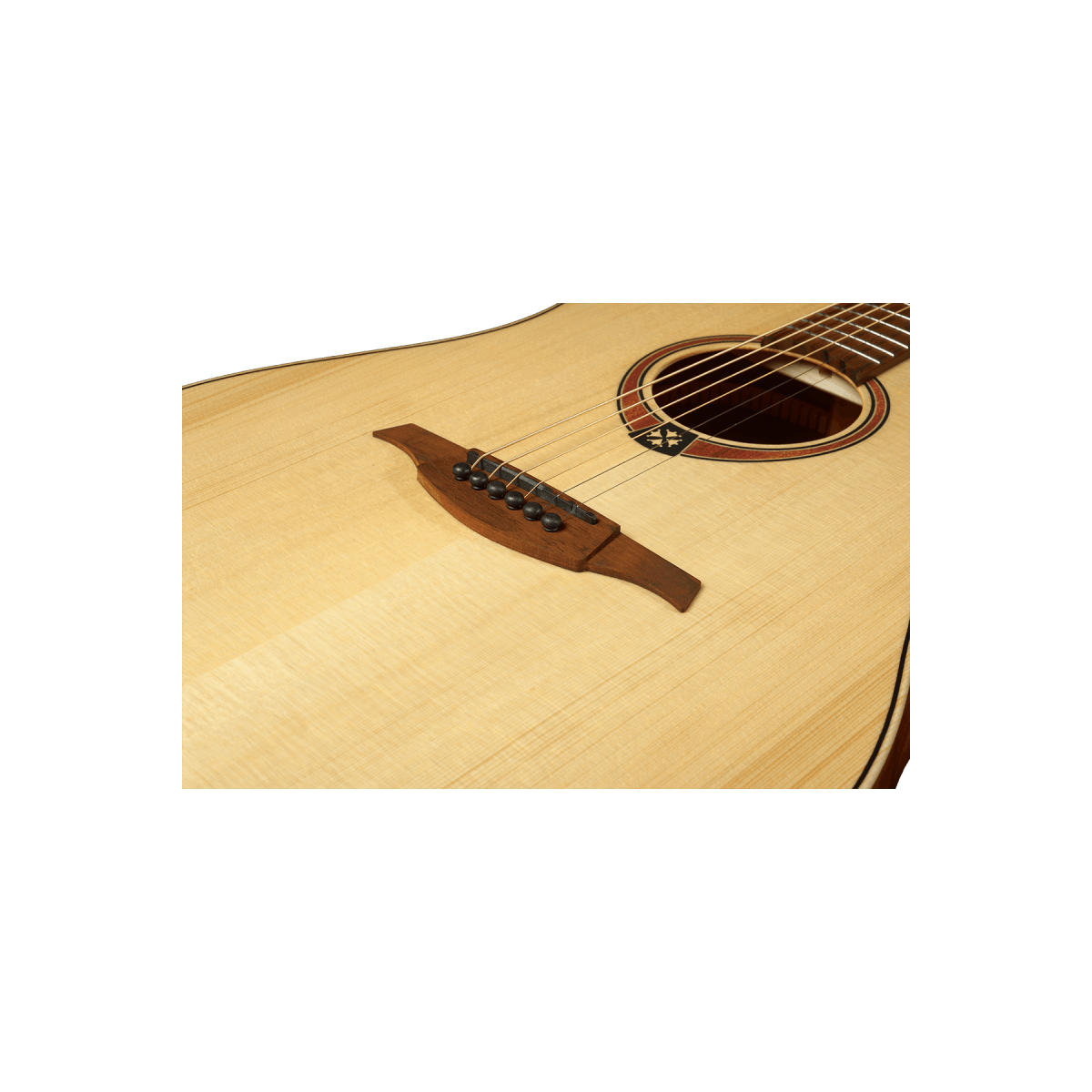 The LAG Tramontane series embodies French artistry, combining exceptional craftsmanship with outstanding tonal performance. Inspired by southern France, each guitar features iconic design elements such as the Occitan cross, elegant oval rosettes, and quarter-circle binding for unmatched playing comfort and visual appeal.