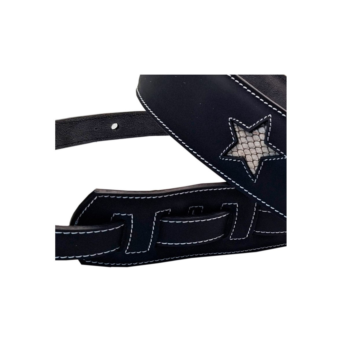 Bourbon Star Design Guitar or Bass Strap in Black.