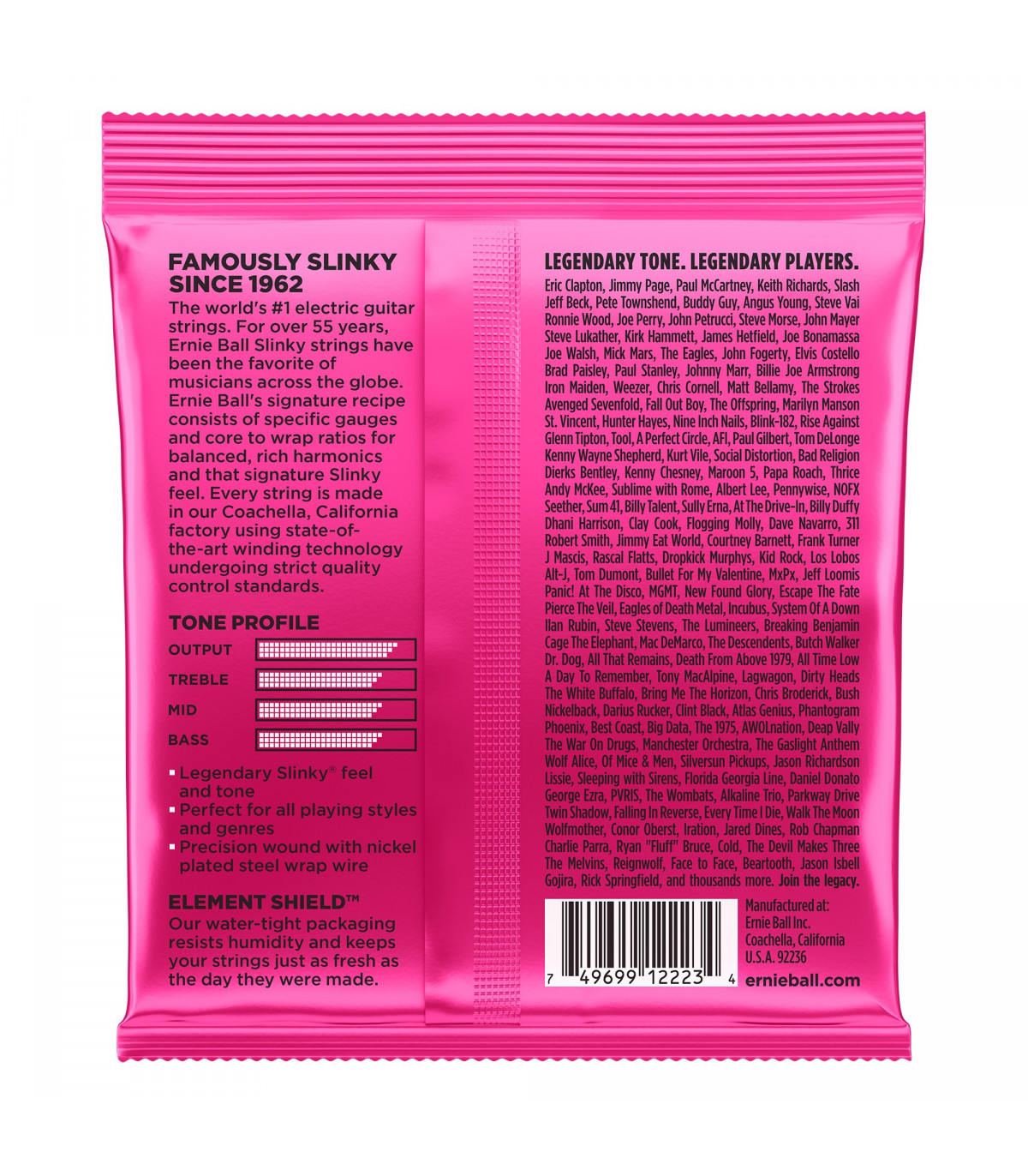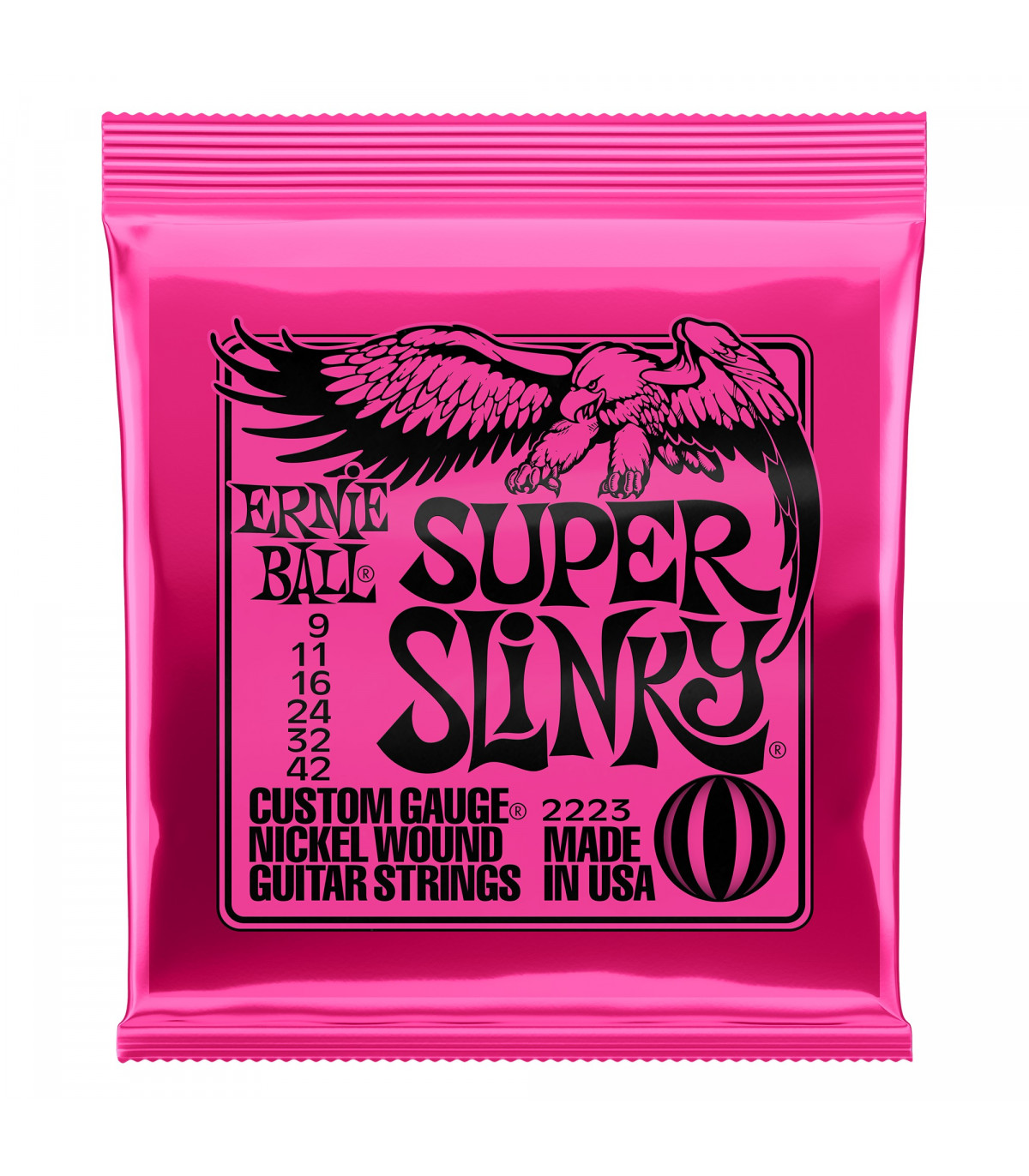 Ernie Ball Super Slinky Electric Strings are used by Jimmy Page, Jeff Beck, and Angus Young, among others. All Ernie Ball strings are precision-made, adhering to the highest quality standards and strict specifications to ensure consistency, optimal performance, and long-lasting durability.