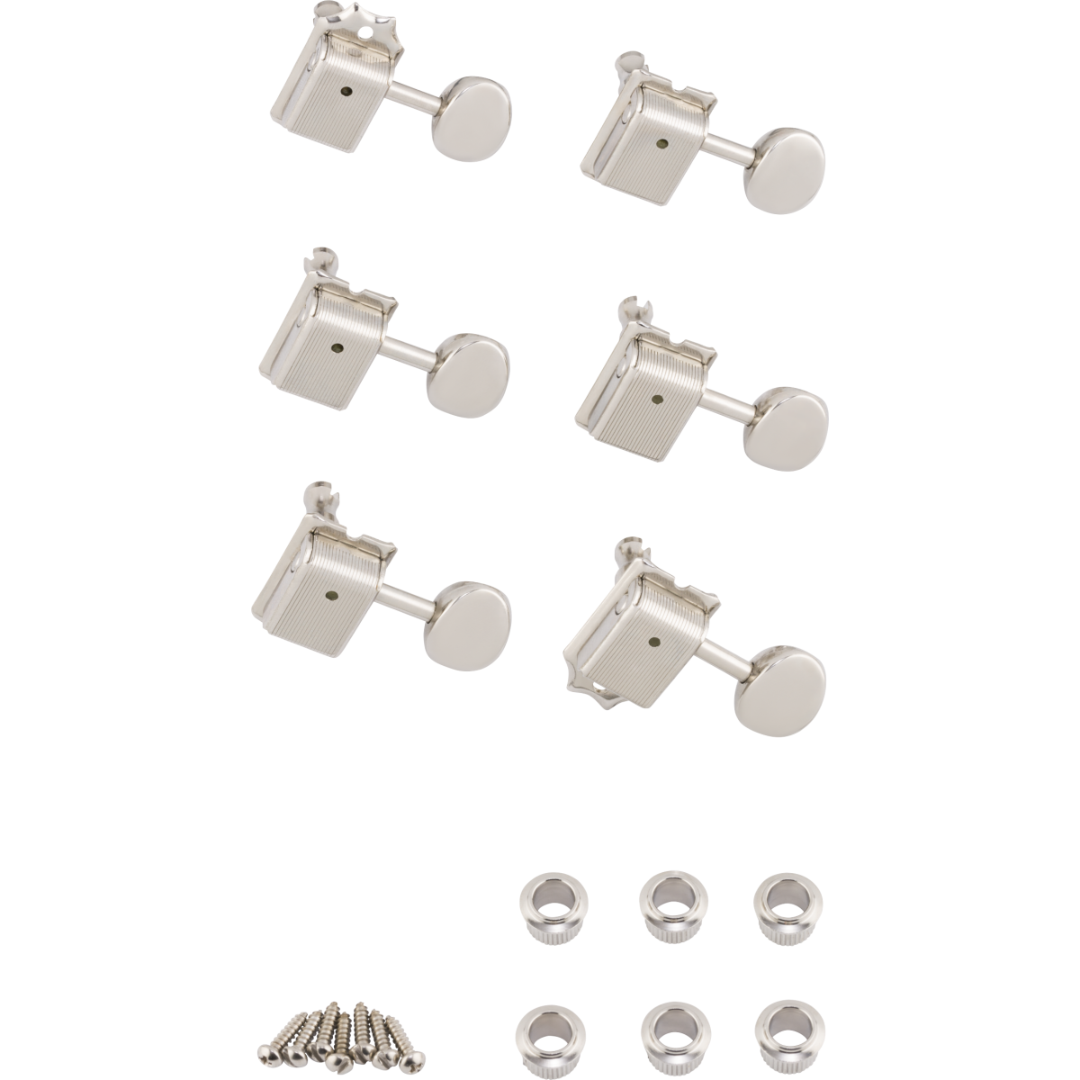 Mounting tools included. The package includes six plated steel tuning machines, bushings, and mounting screws. Fits instruments from the American Vintage (USA), Classic, and Road Worn (Mexico) series.