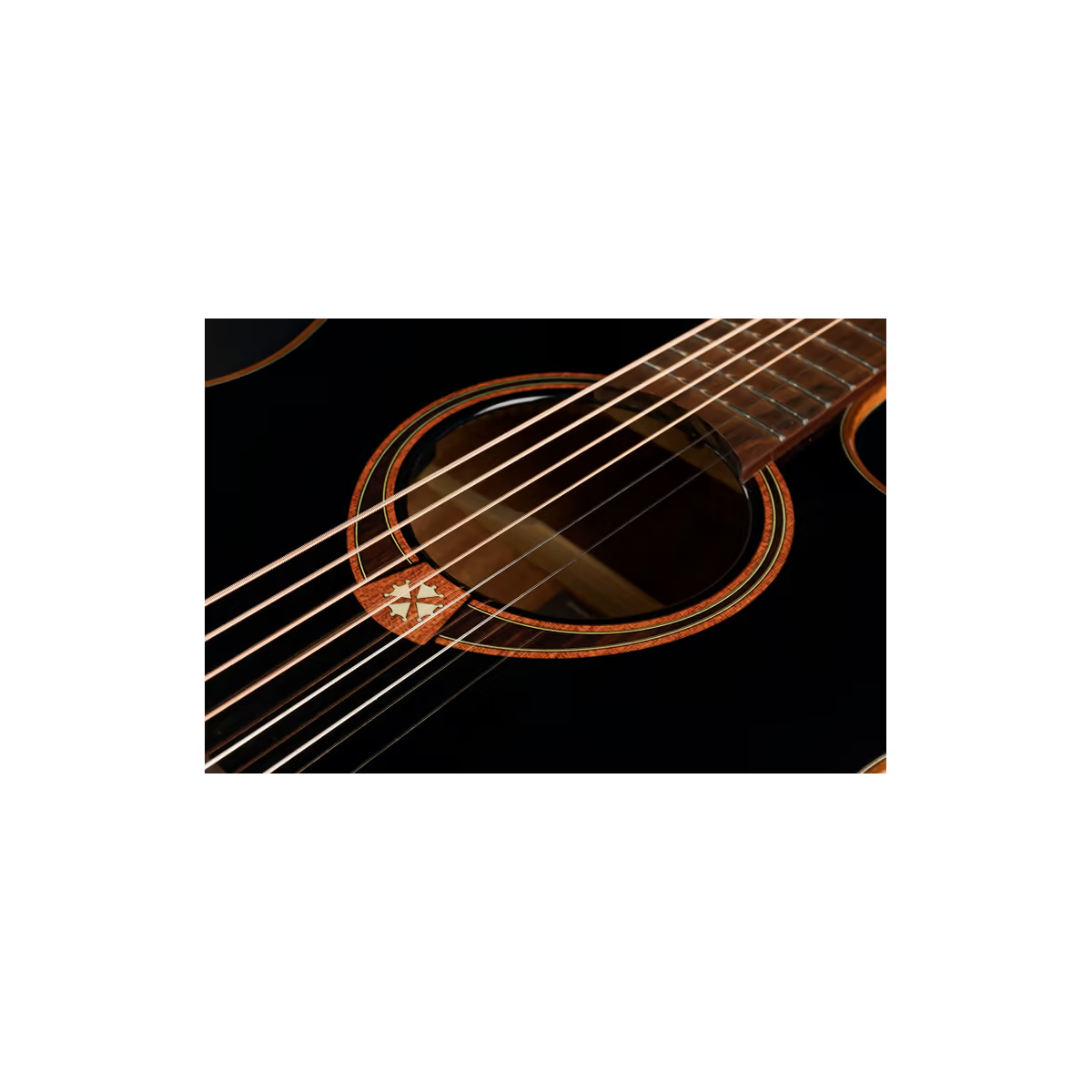 Discover the Lag T118ACE-BLK, an electro-acoustic guitar with an auditorium cutaway and a glossy black finish. Part of the distinguished Tramontane series, this elegant instrument embodies the rich tradition and innovation of Lag Guitars.