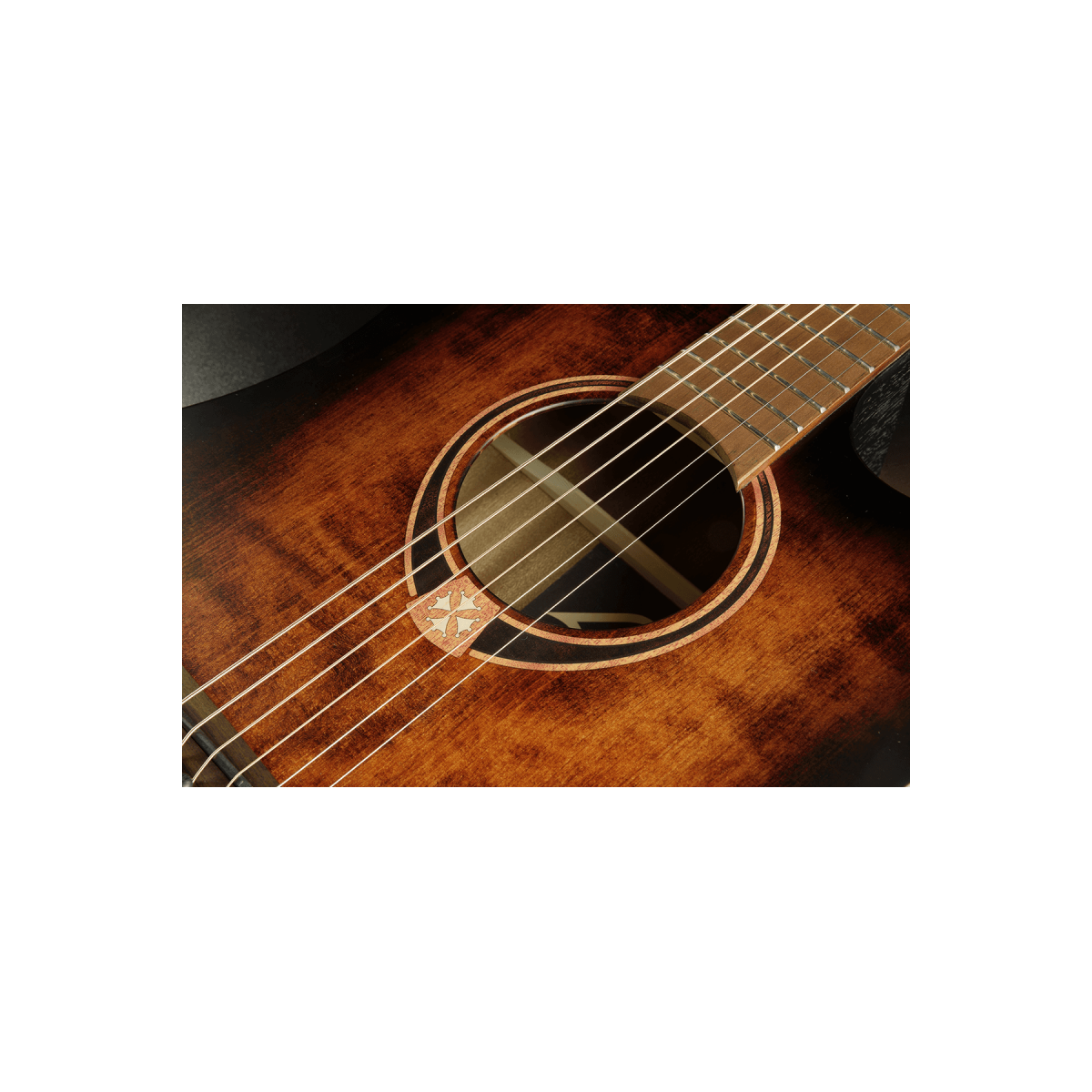 The LAG Tramontane series embodies French artistry, combining exceptional craftsmanship with outstanding tonal performance. Inspired by southern France, each guitar features iconic design elements such as the Occitan cross, elegant oval rosettes, and quarter-circle binding for unmatched playing comfort and visual appeal.