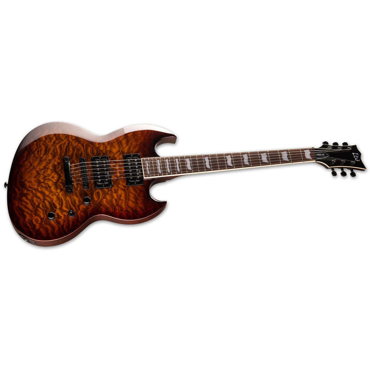 Despite its surprisingly affordable price, the Viper-256 still delivers excellent features such as a fixed neck construction with a fast three-piece mahogany neck, roasted jatoba fingerboard with 24 extra jumbo frets, high-performance ESP Designed LH-150 humbuckers with coil-splitting via the push-pull switch, as well as LTD tuners and a LTD TOM bridge and tailpiece.