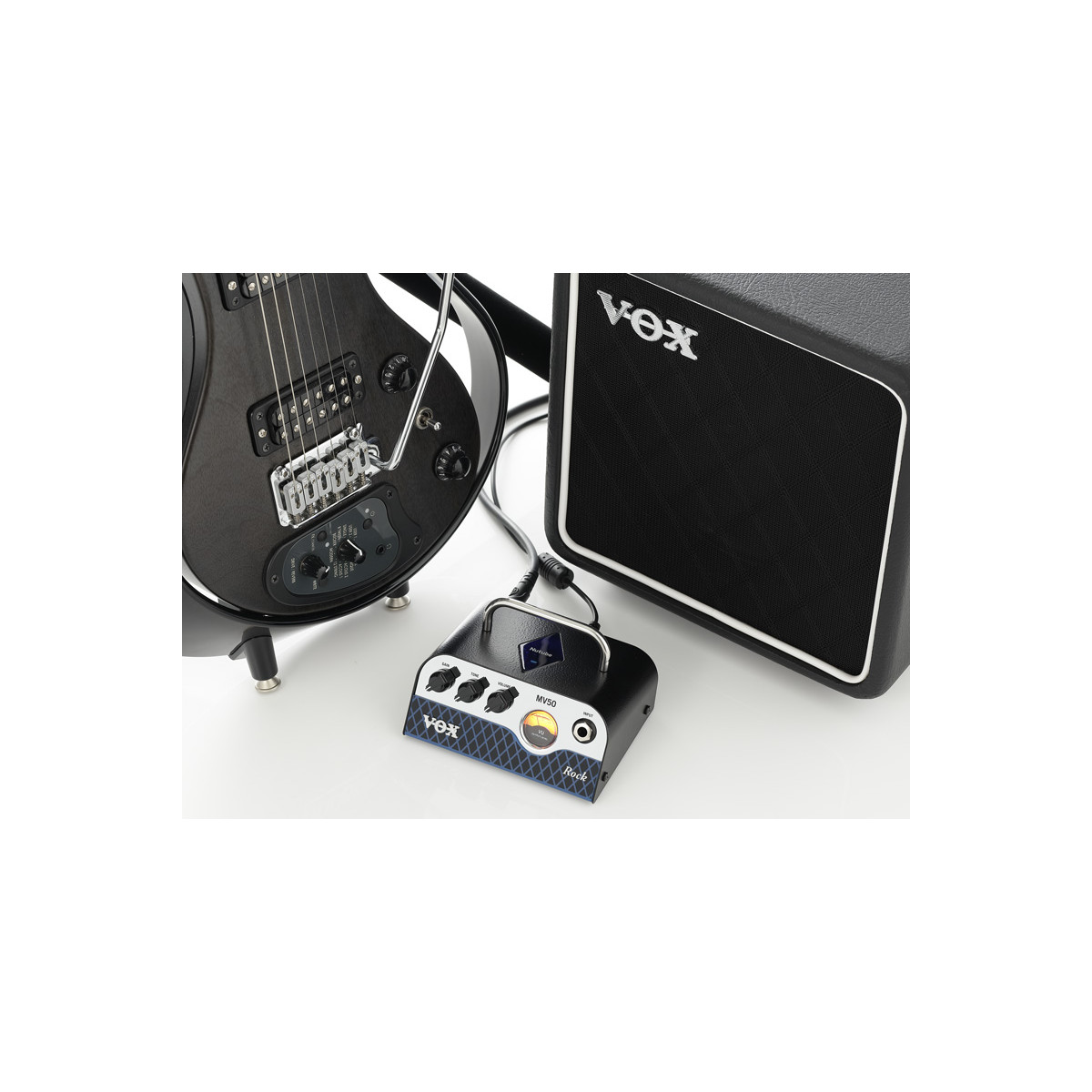 Designed with an emphasis on analog technology, VOX MV50 combines a classic amplifier design with innovative manufacturing techniques to deliver a truly monstrous miniature amplifier. With an incredible 50-watt power output, this 500-gram amp provides authentic guitar tone reminiscent of your favorite vintage tube amplifiers. Equipped with speaker and line/headphone outputs, the MV50 is perfect for stage performance, home practice, or direct recording in the studio.