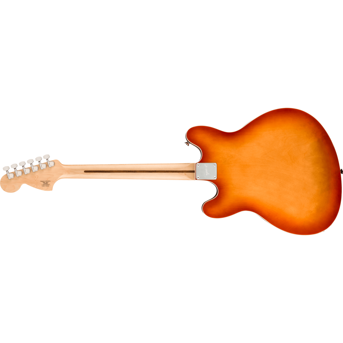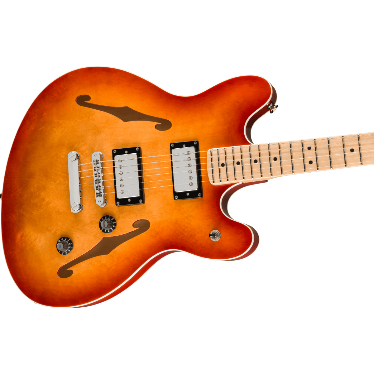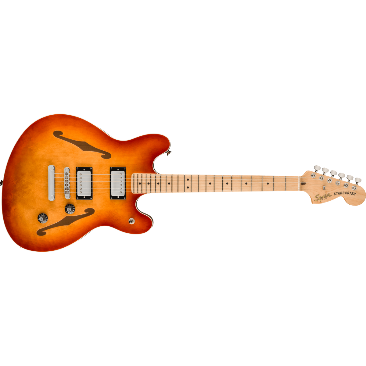 The Starcaster broke the mold of semi-hollow guitar design with its offset body shape when it was introduced in the 1970s, delivering a versatile sound and a style that’s out of this world for the most adventurous guitarists. The Starcaster Deluxe Series Affinity features several easy-to-play refinements, such as a lightweight semi-hollow body, a slim and comfortable "C" shaped neck with the familiar Stratocaster-style tuning machines, an adjustable bridge with a top-loading tailpiece for solid tuning stability, and sealed die-cast tuning machines with split shafts for precise tuning and easy string changes.
