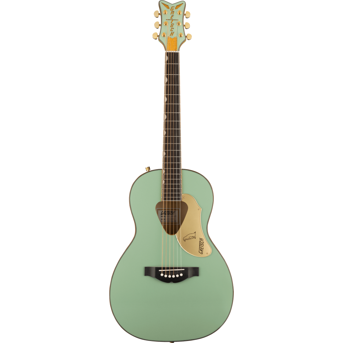 The Gretsch G5021E Rancher Penguin electro-acoustic features the classic Penguin style with intricate details in a highly resonant Parlor-sized acoustic guitar.