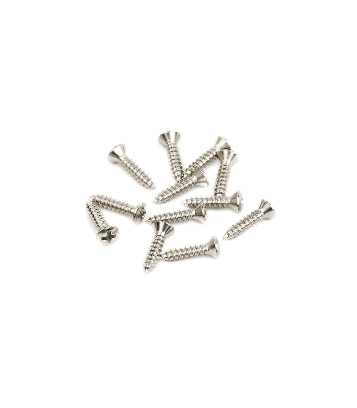 Some of the most requested replacement screws. Manufactured for Fender and used on a variety of vintage and contemporary models. The package contains twelve nickel Phillips oval-head screws (4 x 1/2") for metal plates. These screws are used for mounting the pickguard and bridge cover on most Fender contemporary and vintage instruments. They are also used for attaching the tremolo cover on most vintage and modern Stratocaster models.