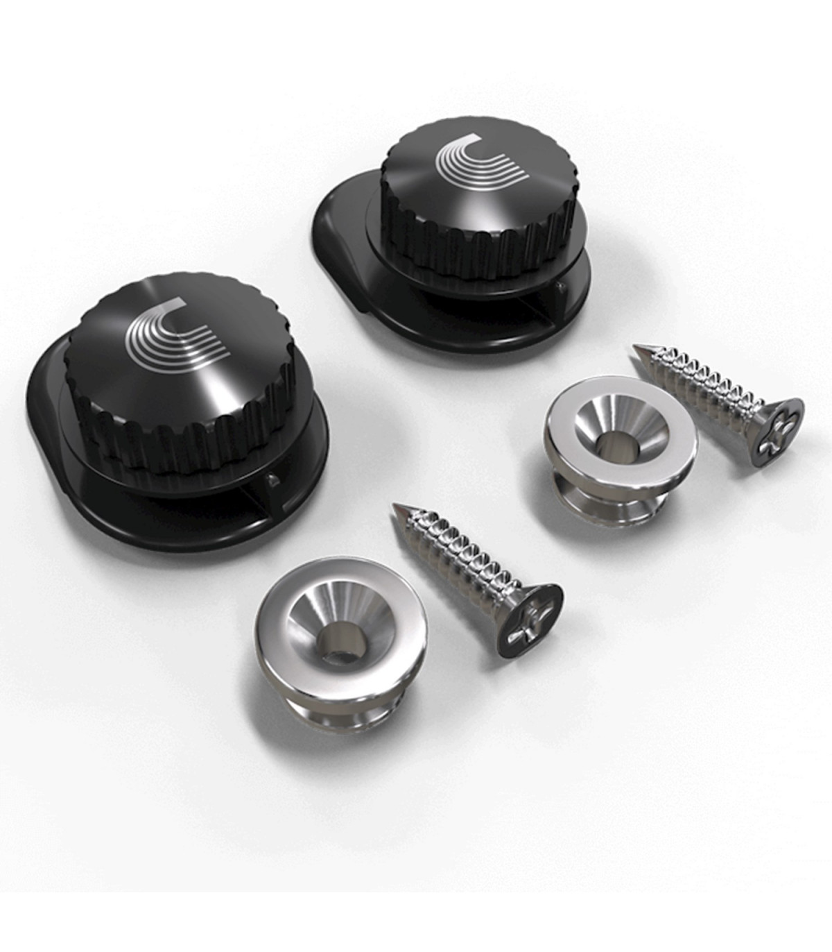 Straplocks with a new design developed by D'Addario