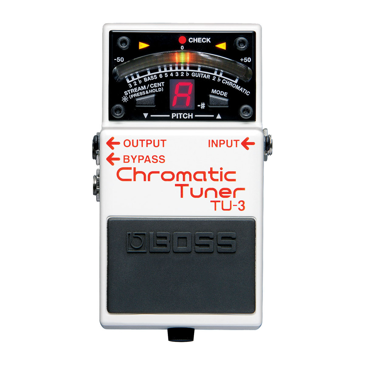 The world's best-selling stage tuner, the Boss TU-2, has evolved and improved with the introduction of the new TU-3. Built with the same solid body as Boss pedals, the TU-3 features a 21-LED display with a High-brightness mode visible even on the darkest stages. Choose between chromatic tuning or guitar/bass tuning modes, and enjoy the Accu-pitch feature for a highly visual tuning check. The TU-3 includes a note indicator that displays notes for 7-string guitars or 6-string basses, while the flat tuning mode allows you to drop standard tuning by up to 6 semitones. This is the new standard tuner every guitarist and bassist needs!