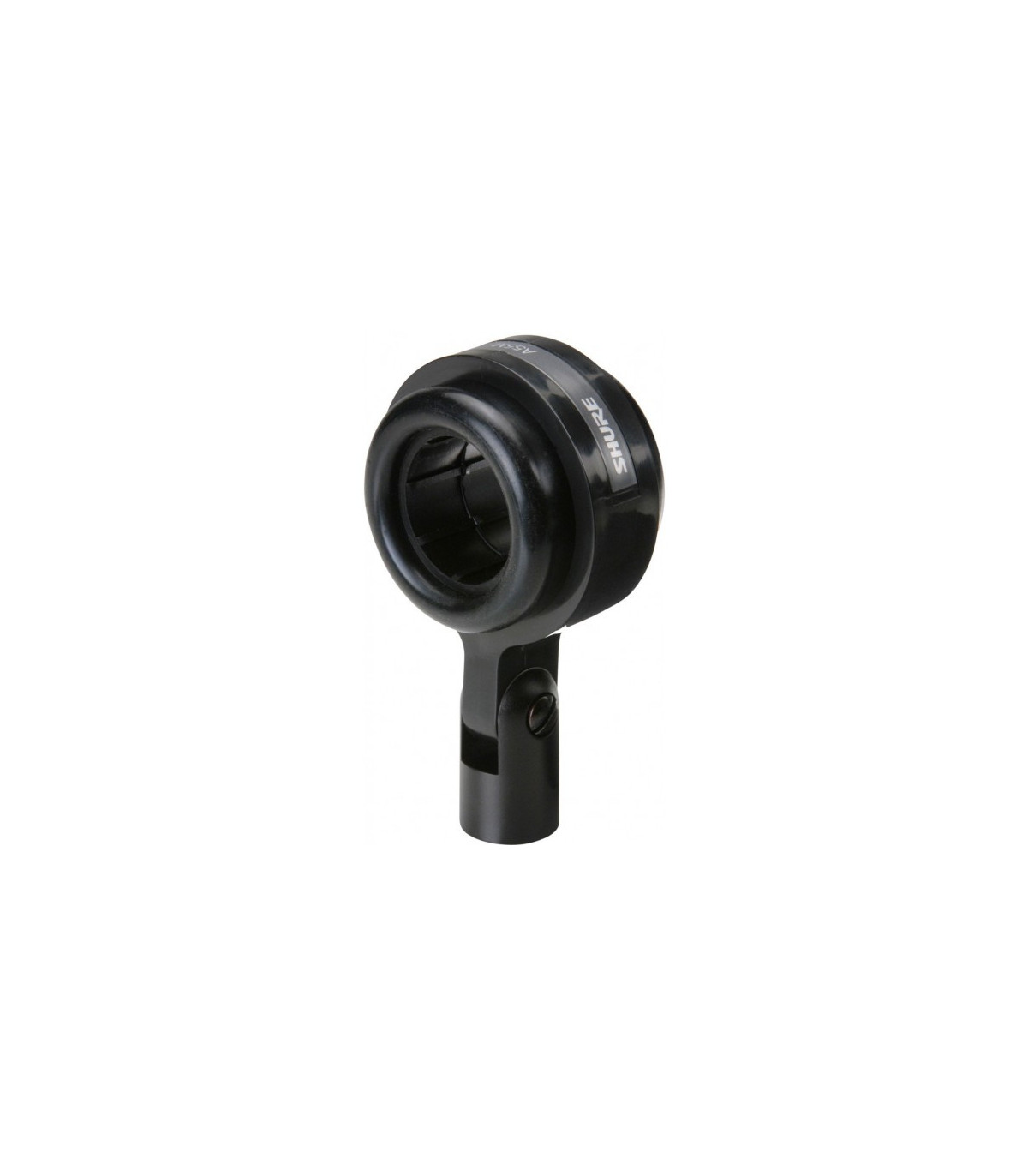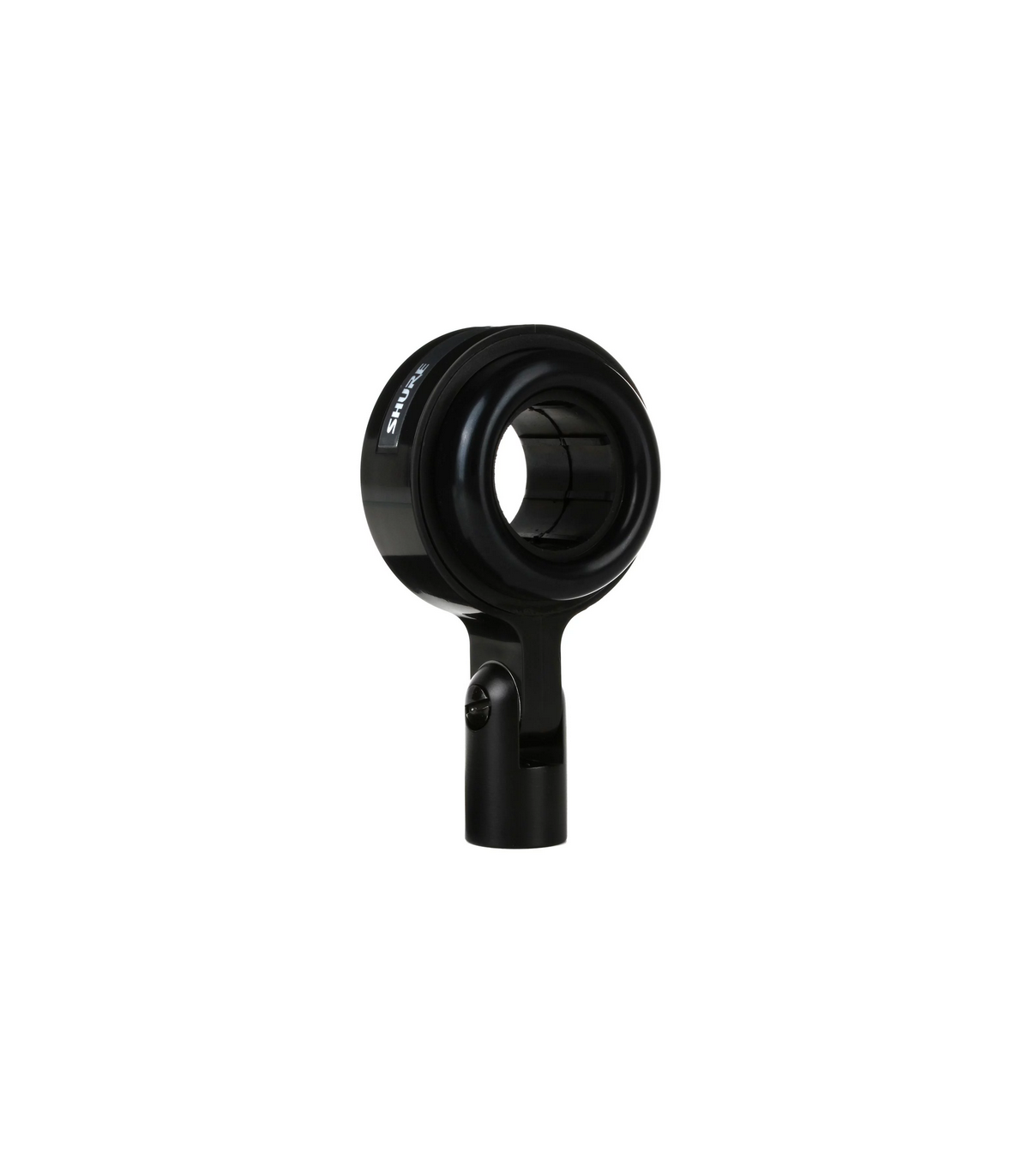 Pinza de micrófono con sistema antigolpes compuesto por un sistema de aislamiento y un adaptador, que permite fijar micrófonos con un diámetro de mango de 25 a 30 mm a un soporte.
