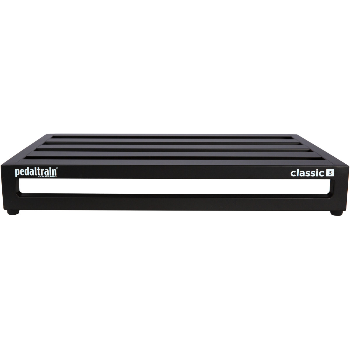 Pedaltrain Classic 3 ofrece una pedalera de 24” x 16” (61 cm x 41 cm) con cinco rieles, espaciado tradicional y una superficie de montaje elevada. Te sorprenderán las nuevas e interesantes configuraciones de pedales que puedes lograr con este modelo. Hay mucho espacio debajo para organizar cables, montar fuentes de alimentación, cajas directas y otros accesorios. Pedaltrain ha dado un salto adelante en el diseño de la funda blanda, reflejando la nueva funda blanda de la serie MAX.