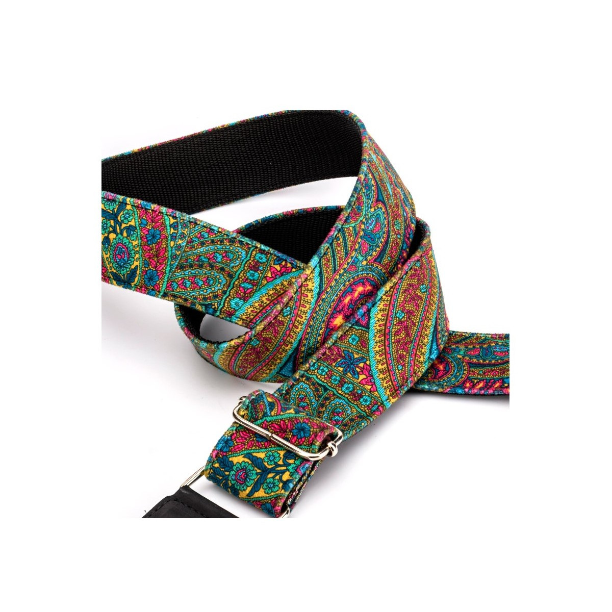 El modelo MOHO es una auténtica mandala de colores y florituras, conforme más la miras, más te gusta, infinitos motivos y colores decoran esta fantástica correa textil realizada completamente a mano.