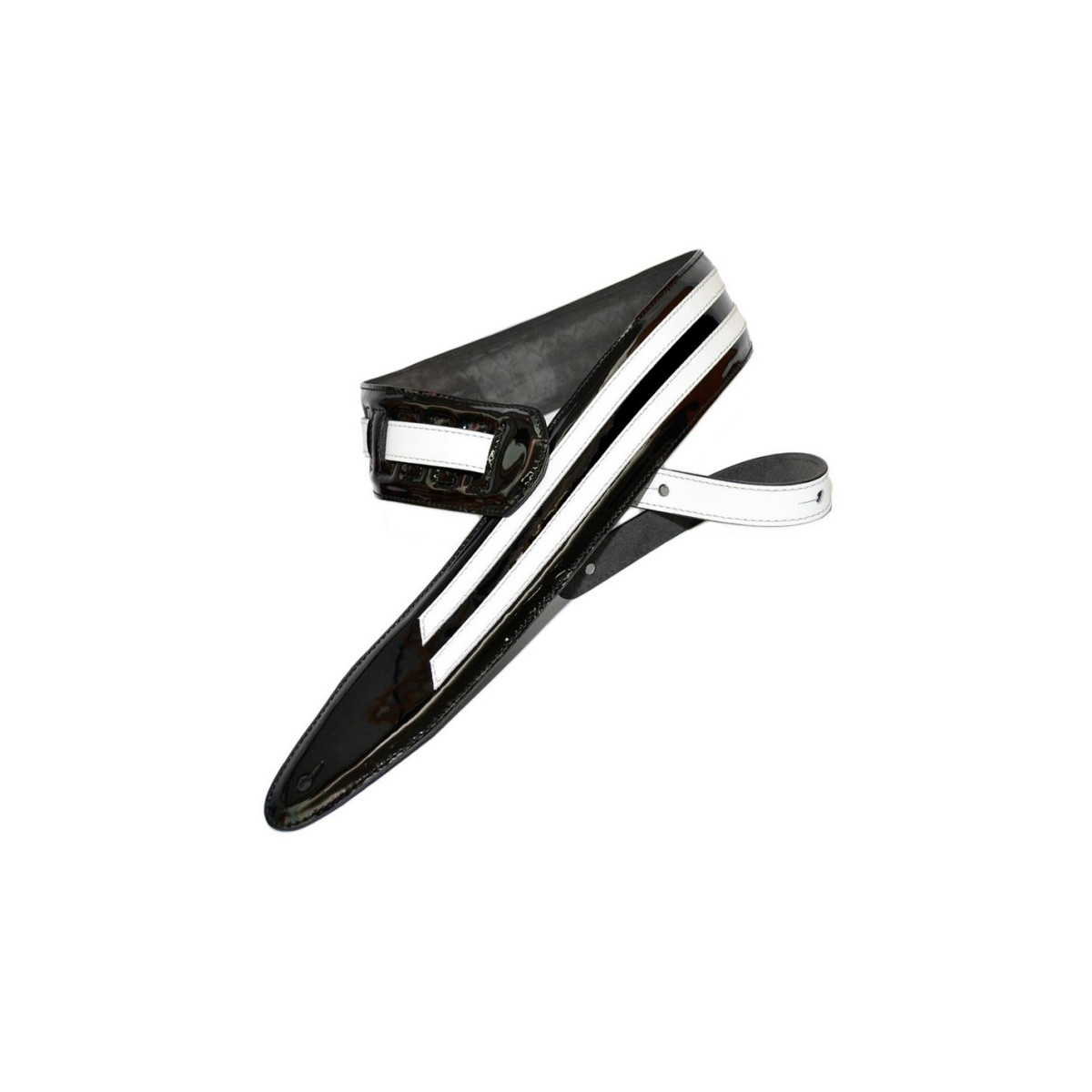 Las líneas blancas y paralelas nos recuerdan al mundo de las carreras de coches, combinadas con negro, azul o rojo da una gran vistosidad a esta correa que seguro hará destacar tu guitarra dándole ese punto "Fast&Furious".