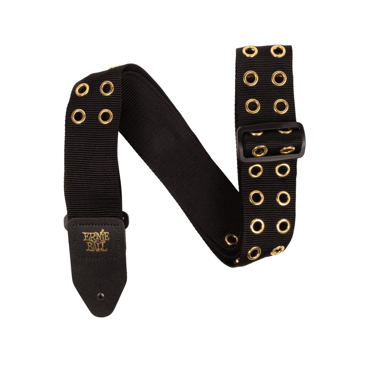 Las correas premium de Ernie Ball ahora incluyen tres nuevos diseños, confeccionadas con una resistente y cómoda cinta de polipropileno de 5 cm de ancho, adornada con el icónico logotipo dorado de EB estampado. Estas correas tienen extremos de cuero negro cosidos a máquina y hebillas y conectores ajustables de Delrin, lo que mejora su atractivo visual y durabilidad. La longitud de la correa es ajustable, de 104 cm a 183 cm.