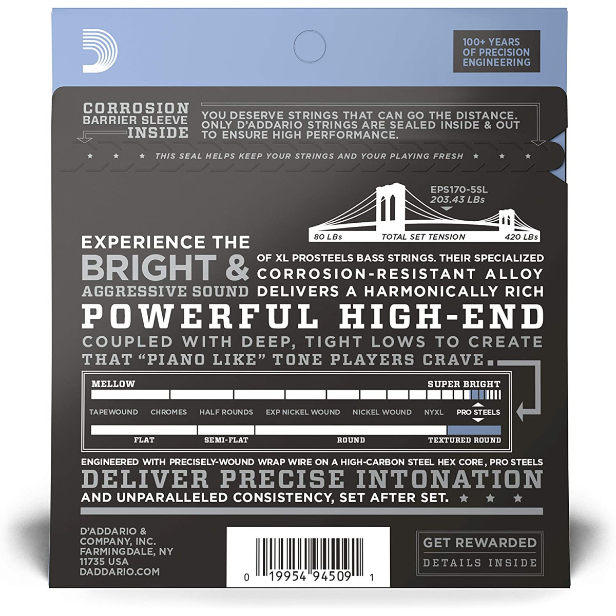 Pack de cuerdas para bajo eléctrico Daddario EPS170-5SL ProSteel.