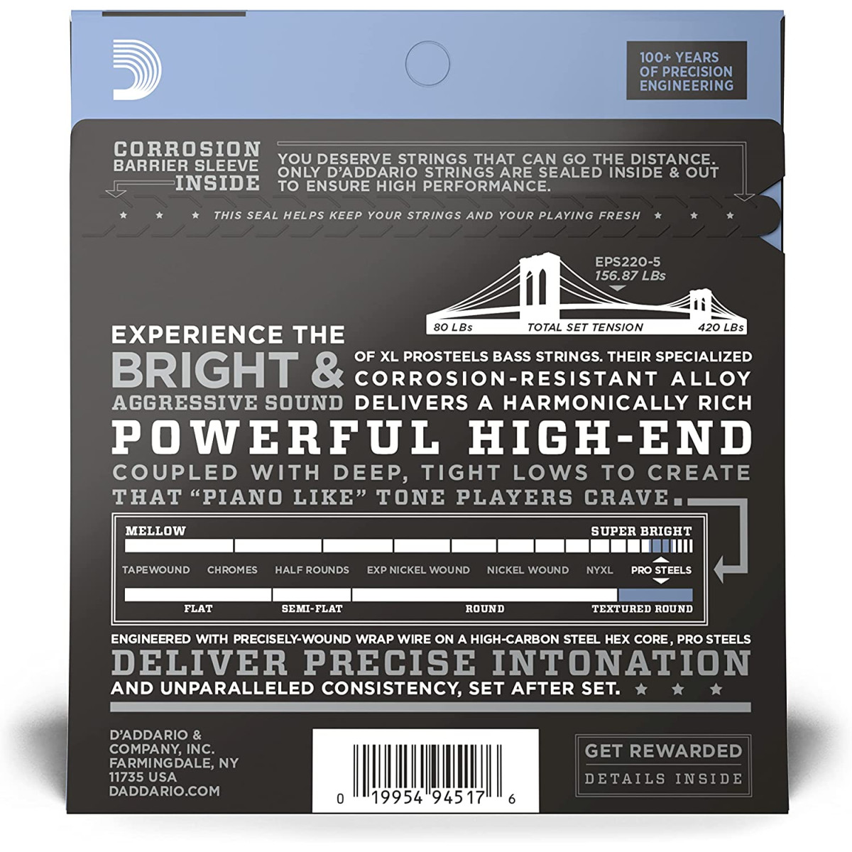 Pack de cuerdas para bajo eléctrico Daddario EPS220-5 ProSteel.