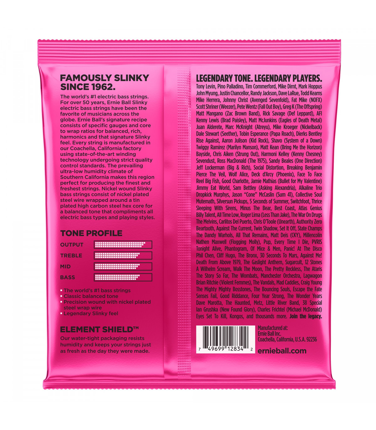Ernie Ball es uno de los fabricantes líderes de cuerdas y accesorios, ha estado fabricando cuerdas de altísima calidad para guitarra y bajo desde 1962 utilizando las últimas tecnologías y los mejores materiales. Músicos de la talla de Paul McCartney, Keith Richards, Eric Clapton, Slash, Jimmy Page y Buddy Guy han usado sus productos.