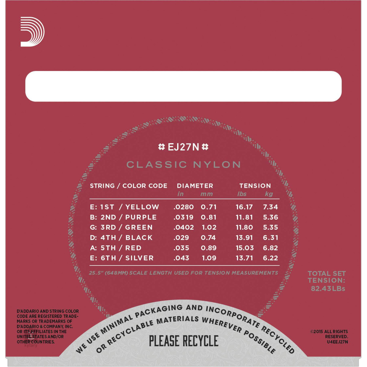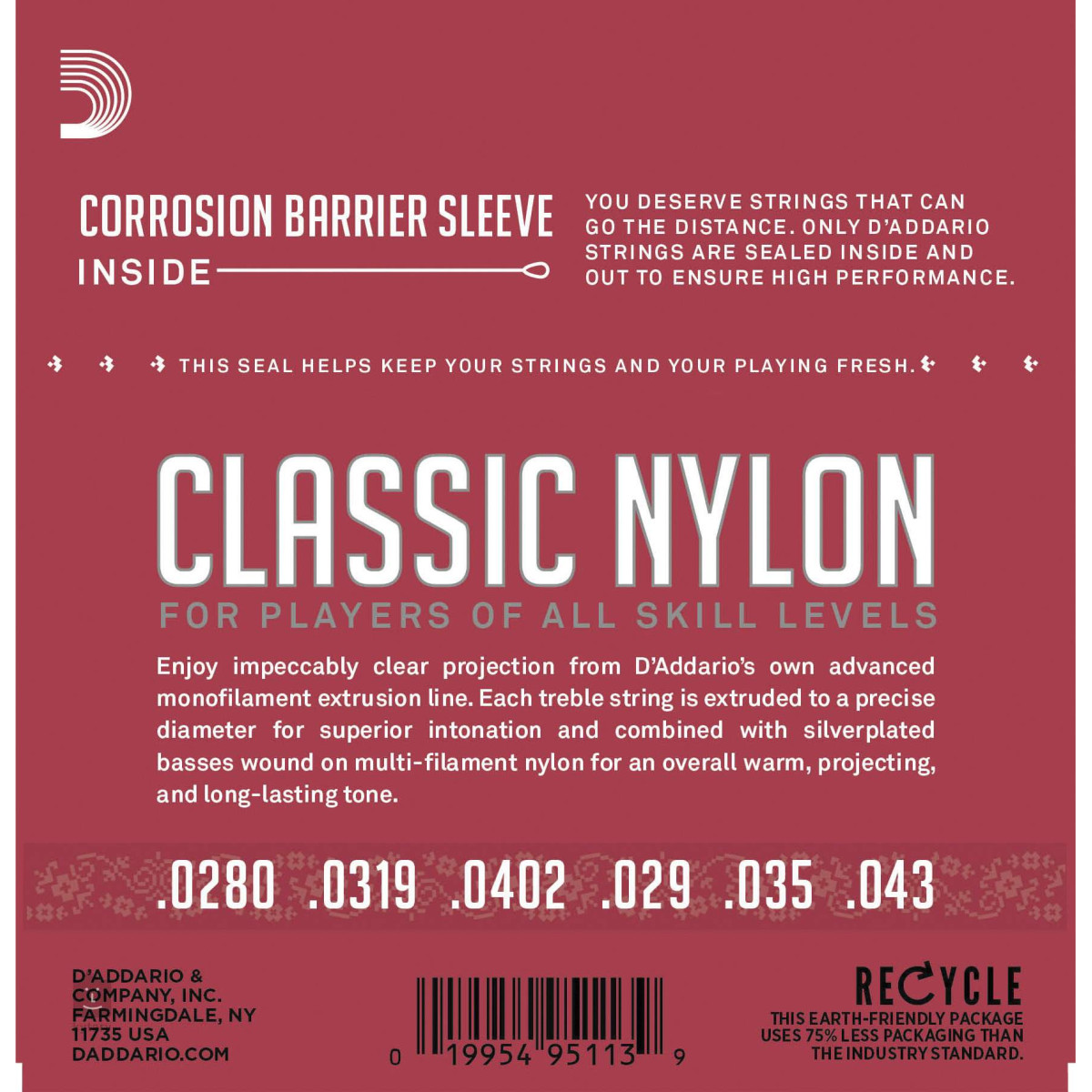 Las cuerdas para guitarra clásica de nailon D’Addario son fantásticas para principiantes, estudiantes y profesionales. Cada juego de tensión normal contiene 3 cuerdas de nailon transparente y 3 graves entorchadas con cobre plateado, para obtener un equilibrio óptimo de tono cálido, proyectado y duradero.