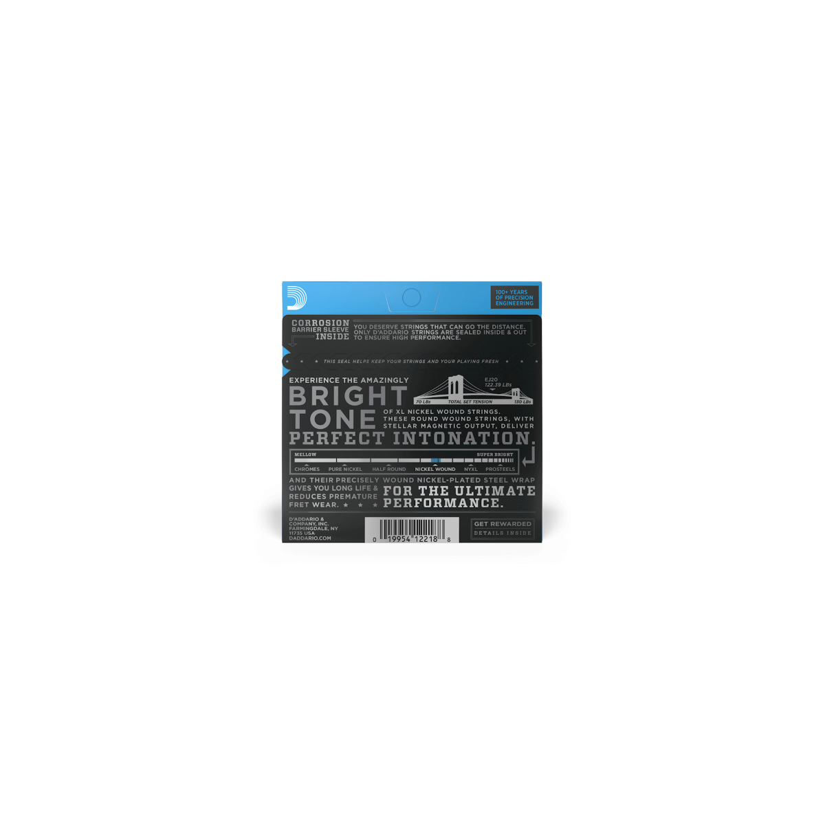 Son las cuerdas para guitarra eléctrica más populares de D’Addario, llevan un entorchado de precisión con acero niquelado sobre un núcleo de acero al carbono de forma hexagonal estirado con cuidado. El resultado, cuerdas con un tono duradero y brillante y excelente entonación, es ideal para la más amplia variedad de guitarras y estilos musicales.