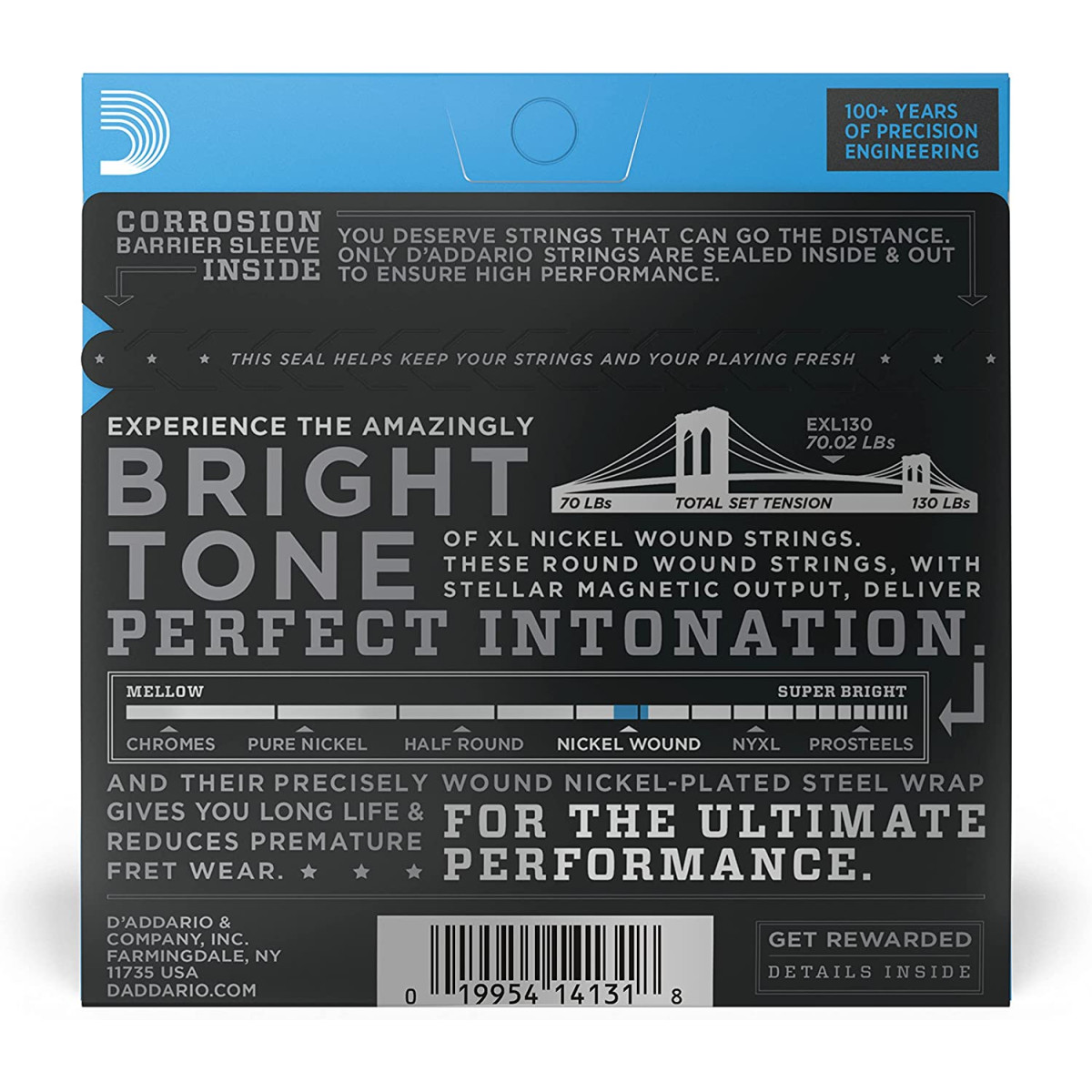 Las cuerdas XL de entorchado de níquel, las cuerdas para guitarra eléctrica más populares de D’Addario, llevan un entorchado de precisión con acero niquelado sobre un núcleo de acero al carbono de forma hexagonal estirado con cuidado. El resultado, cuerdas con un tono duradero y brillante y excelente entonación, es ideal para la más amplia variedad de guitarras y estilos musicales.