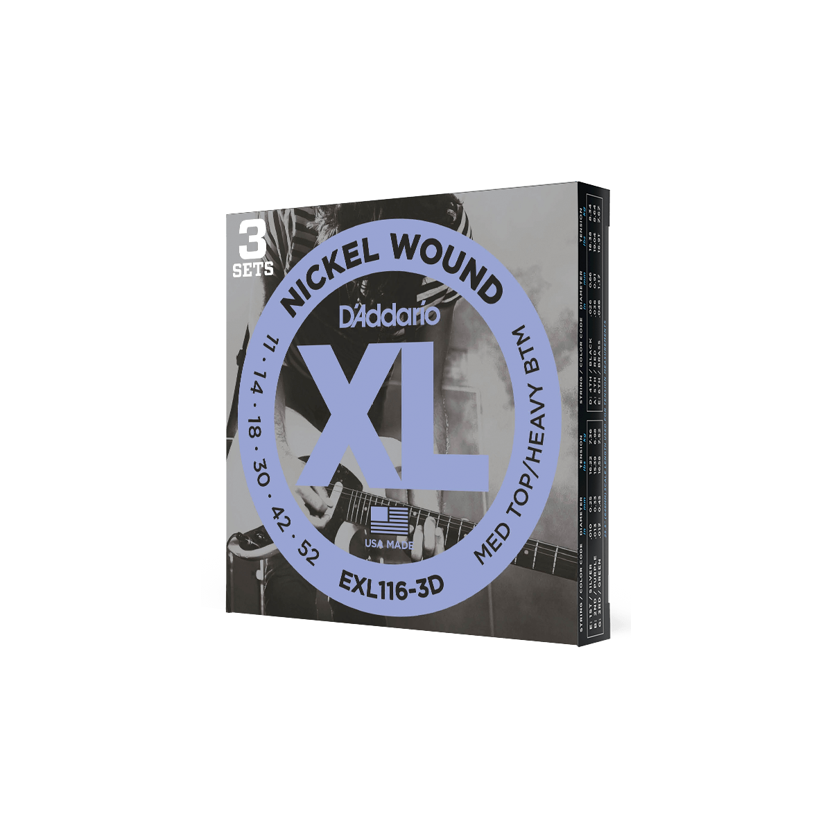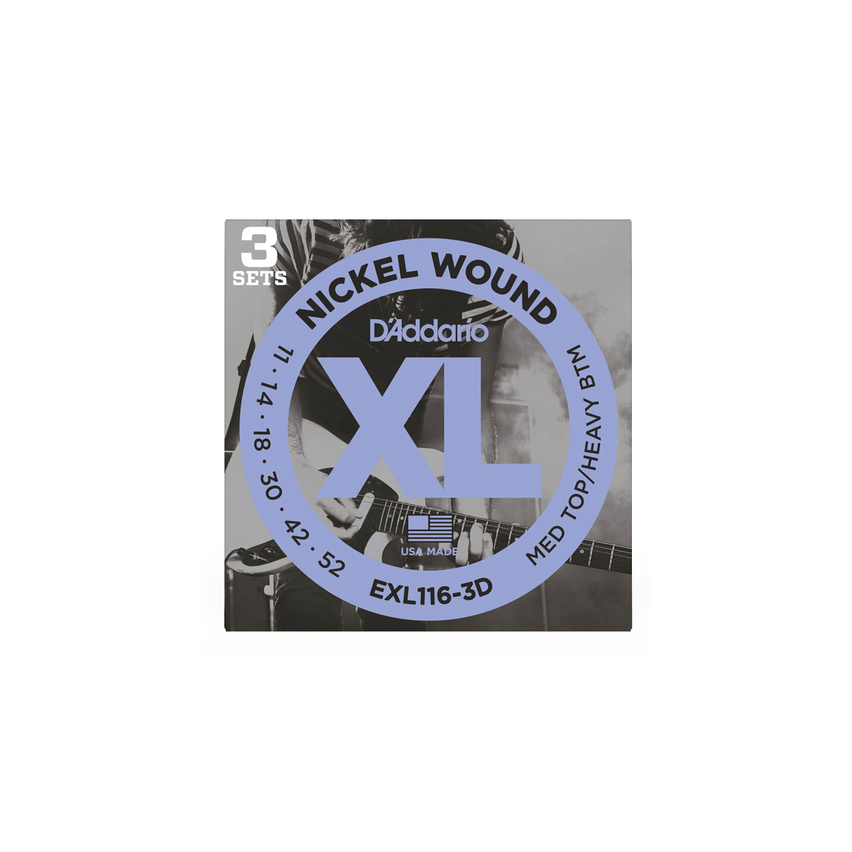 Pack de 3 juegos de cuerda para guitarra eléctrica, EXL116-3D.