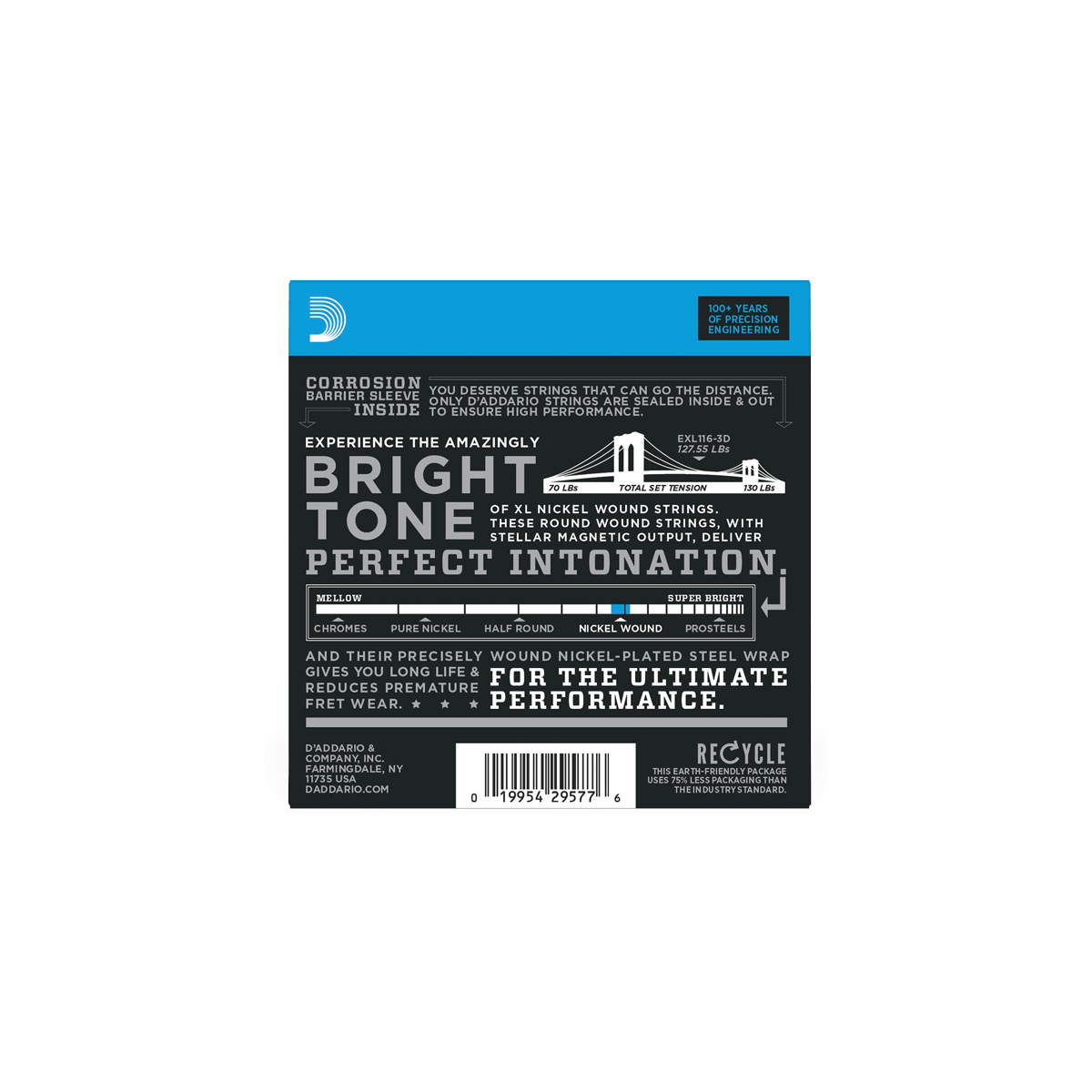 Las cuerdas de guitarra eléctrica XL Nickel Wound son el estándar con el que se miden todas las demás cuerdas. Nuestro juego de cuerdas eléctricas más vendido, XL Nickel, ha sido venerado por los músicos de todo el mundo desde 1974. Fabricadas con un núcleo de acero con alto contenido de carbono y un alambre de acero niquelado, las cuerdas XL Nickel tienen un tono brillante y versátil, ideal para una amplia variedad de estilos musicales. Las cuerdas de calibre 11-52 Medium Top/Heavy Bottom son un híbrido, que proporciona a las cuerdas altas una flexibilidad moderada, con un extremo bajo potente y ajustado.