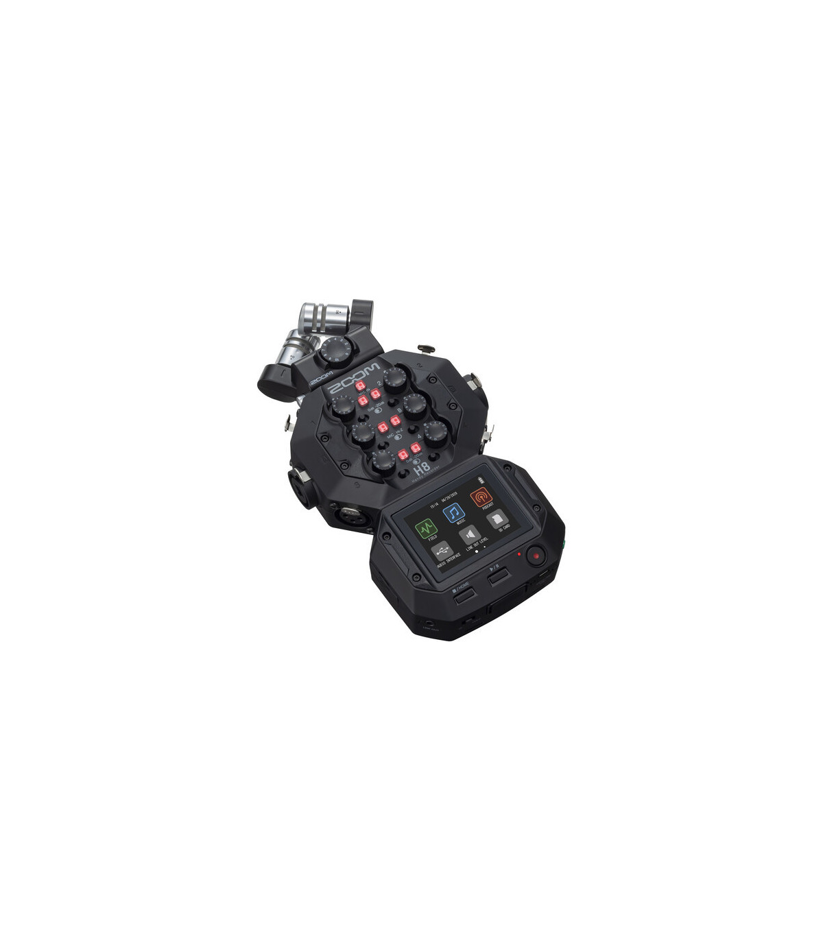 La Zoom H8 es una grabadora de campo portátil que cuenta con un micrófono unidireccional X/Y para capturar grabaciones de audio inmersivas.