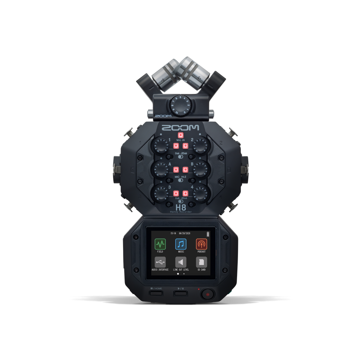 La Zoom H8 cuenta con tres modos controlados por aplicaciones, que posibilitan optimizar la grabación en función de lo que necesites. Por ejemplo, con el modo Podcast podrás utilizar pads para incorporar efectos de sonido, cortinillas y mucho más a tu transmisión. También cuenta con una gran pantalla táctil LCD con la que podrás navegar fácilmente entre los modos, los ajustes y los parámetros.