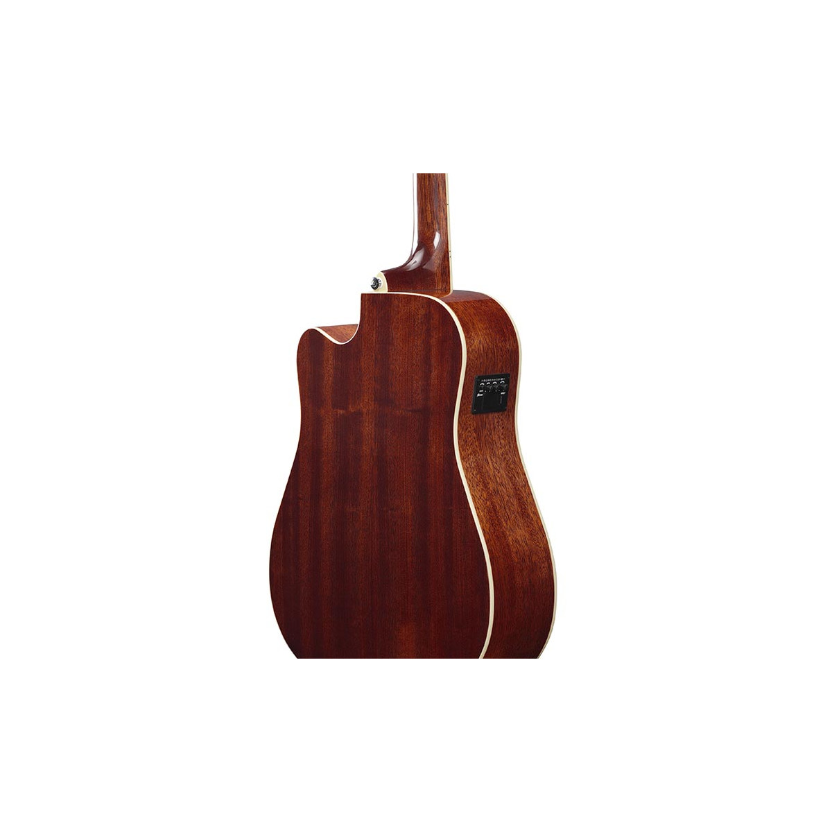 La Ibanez PF16WCE-NT Natural High Gloss es una elección ideal para guitarristas y guitarristas que quieren dar sus primeros pasos en el escenario y en estudio. La guitarra electroacústica dreadnought Western con tapa de pícea y cuerpo de okoume produce un sonido pleno y equilibrado que también se puede tocar amplificado gracias al sistema de pastillas propio. Al mismo tiempo, su diseño en forma de un acabado natural de alto brillo, un golpeador de tortuga que es a la vez funcional y atractivo, así como una roseta de perlas acrílicas y un binding de una sola capa, satisface las exigencias visuales de un instrumento de escenario.