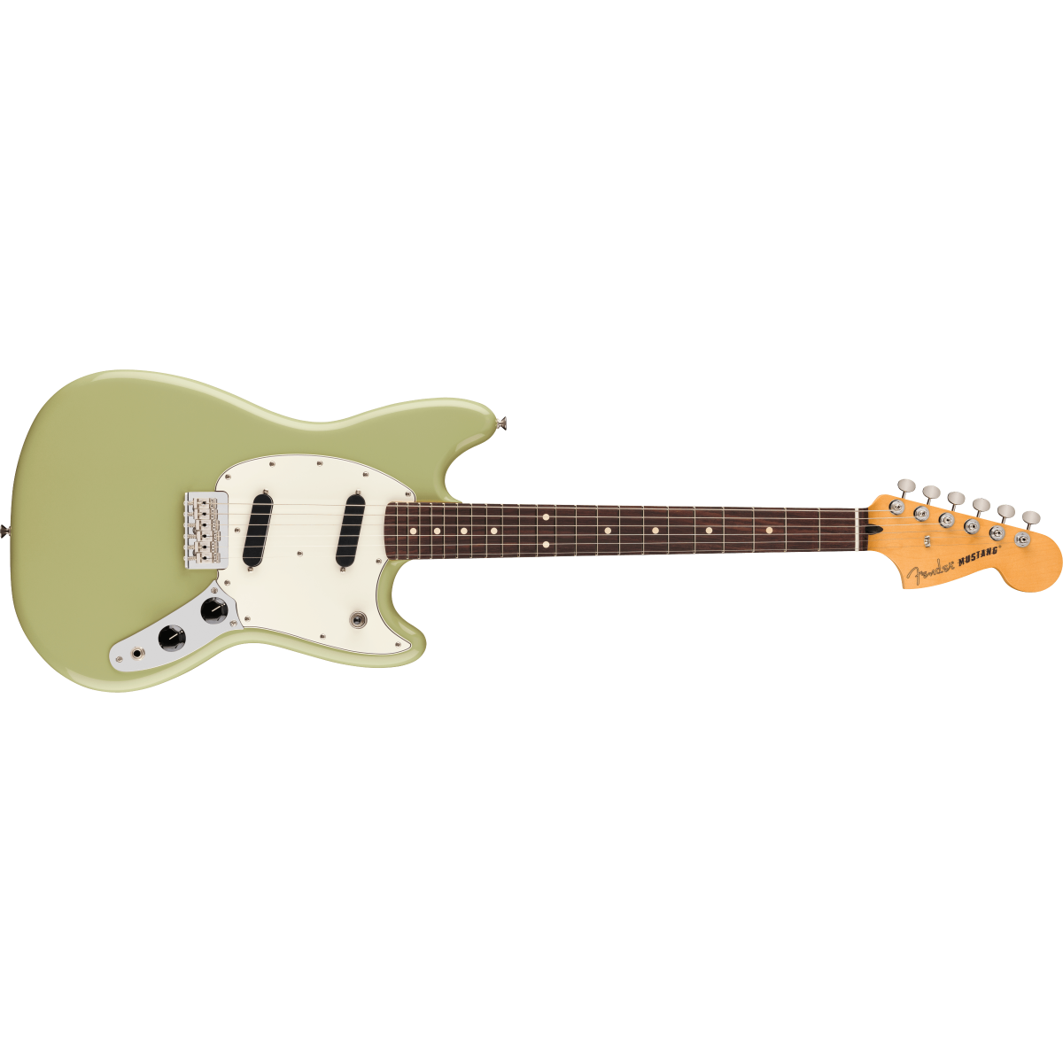 Las pastillas Player Series Alnico V Single-Coil Mustang brindan agudos claros, medios musicales y graves precisos que mejoran cualquier estilo musical. El selector de 3 posiciones permite ajustar fácilmente desde el tono cristalino de la pastilla del mástil hasta el gruñido potente de la pastilla del puente, pasando por todos los matices intermedios. Además, un puente fijo de 6 selletas, selletas de acero doblado y afinadores ClassicGear aseguran una afinación precisa para explorar un sinfín de posibilidades sonoras.