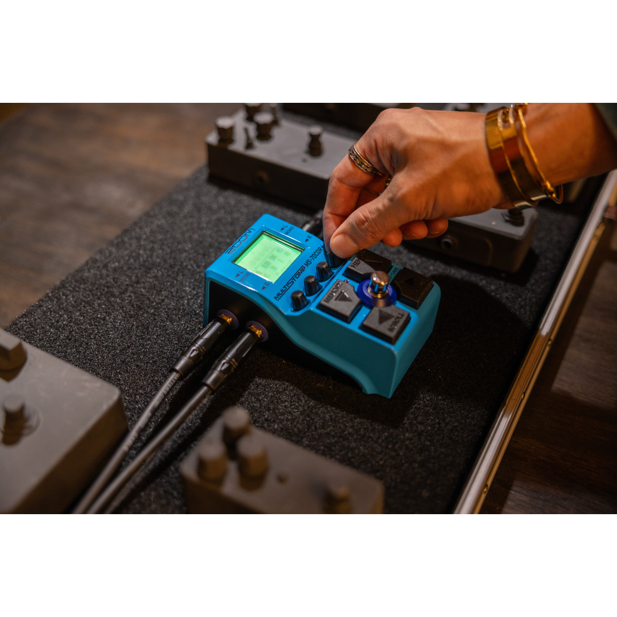 Y gracias a la función MIDI USB, podrá conectar el MS-70CDR+ a otros dispositivos MIDI para activar cambios de patch a distancia. La pantalla LCD de la MS-70CDR+ cambia de color para indicar qué tipo de efecto está utilizando. Sus botones direccionales le permiten desplazarse por los efectos con el pie y los cuatro potenciómetros codificadores cambiar parámetros instantáneamente. Con un chasis metálico resistente a cualquier situación que se le pueda presentar, funciona con 2 pilas AA, alimentación USB-C o un adaptador de corriente. Su afinador cromático ofrece información visual que le ayuda a afinar su instrumento de forma rápida y precisa. Admite afinaciones estándar, abiertas y drop tunings. Finalmente, puede editar y compartir sus sonidos con la aplicación Handy Guitar Lab para iOS.