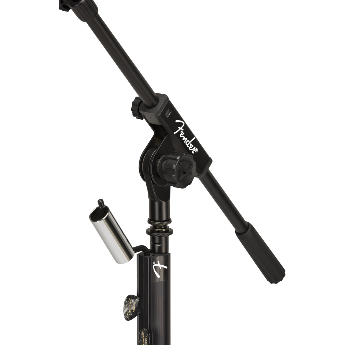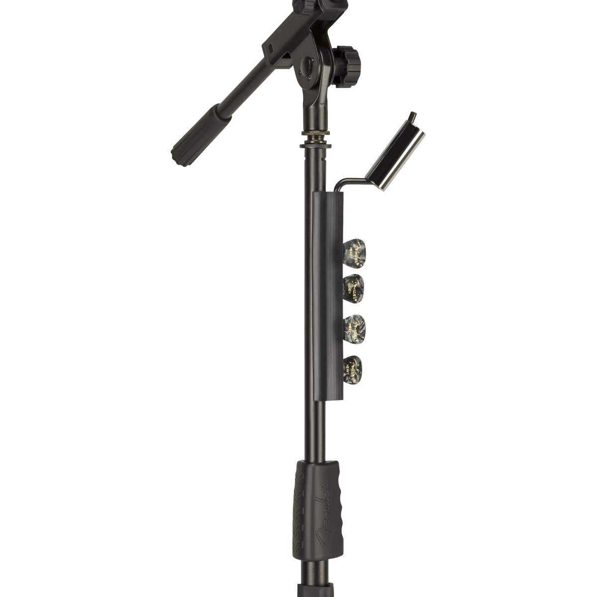 El soporte de micrófono con brazo telescópico Fender también incluye un soporte deslizante y de selección extraíble que se puede acoplar y desmontar fácilmente. Elaborado con caucho duradero, este accesorio con clip tiene capacidad para hasta 12 púas para un acceso y almacenamiento rápidos. El soporte para slides tiene capacidad para todas los tamaños habituales y también es extraíble.